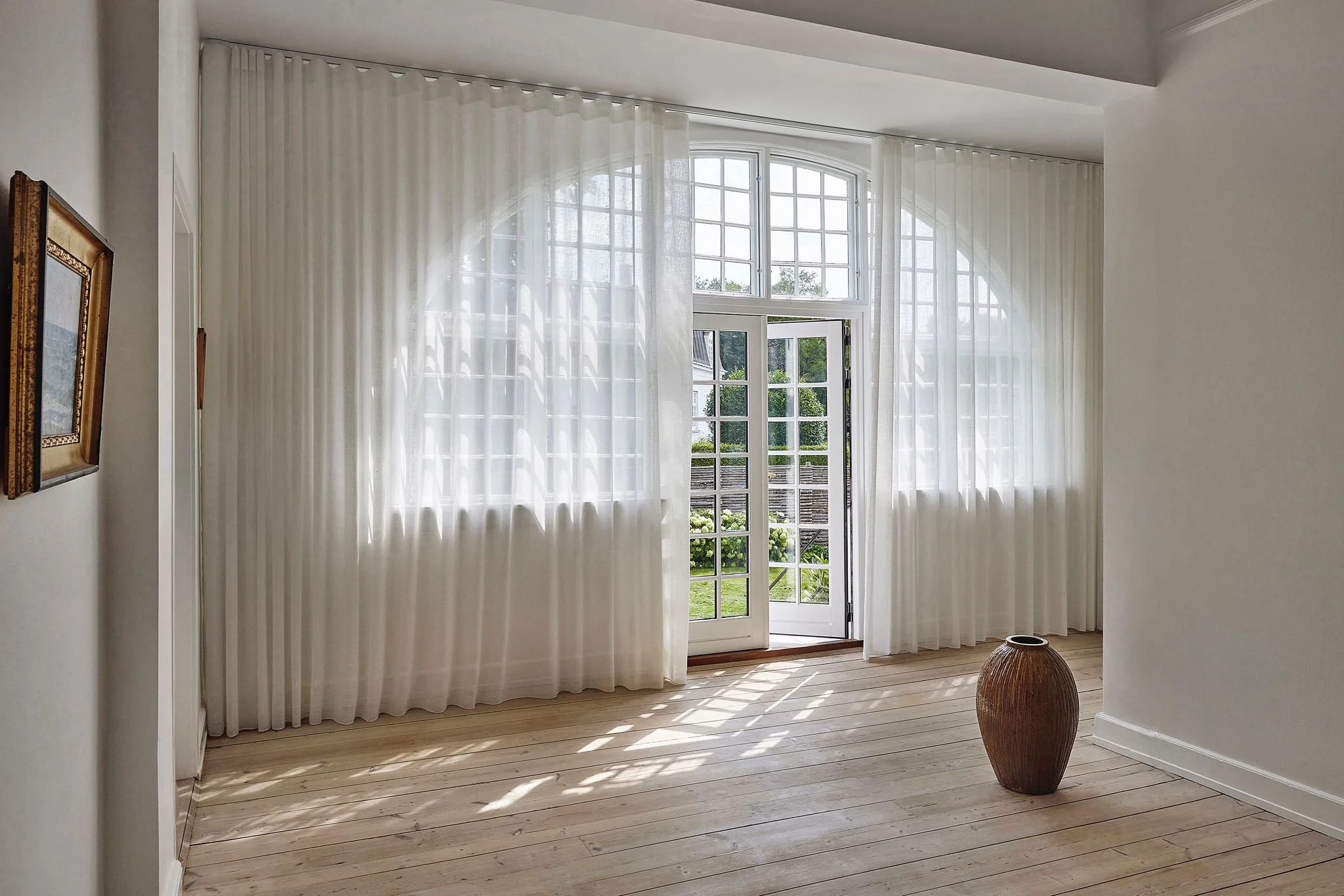 Perfekt pasform – Vi måler op hjemme hos dig, så dine gardiner sidder præcist, uanset vinduets størrelse og form.